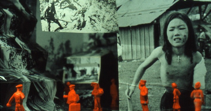 On peut considérer Le Huitième Jour (1967) comme étant l’un des éléments pour écran (en mouvement) parmi les centaines qui entraient dans la composition de l’installation multimédia conçue par l’artiste montréalais Charles Gagnon. Dans le Pavillon chrétien, Gagnon a utilisé plus de trois cents photographies et quarante haut-parleurs pour entourer les spectateurs d’images et de sons évoquant la vie au quotidien. Le huitième jour était projeté en boucle dans une salle pour cent personnes dans la partie inférieure du pavillon. Le film en 16 mm, de 14 minutes, pour écran unique puise son titre dans les écritures saintes et renvoie au jour où l’humanité reçoit, de Dieu, la Terre en héritage. Extraits d’actualités filmées et images fixes sont alliés selon une technique de collage qui proposait une critique virulente des technologies de la guerre, de la violence et de la société de consommation d’après-guerre. Gagnon a commencé le film en 1966 avec l’assistance de Judith Trotsky, une chercheure en cinéma établie à New York, qui a retrouvé, en fouillant dans différentes bibliothèques d’actualités filmées, les séquences très précises requises par Gagnon. Le montage brillant de Gagnon exploite le film-collage et sa capacité de produire une étrange ambivalence qui faisait, ici, que le spectateur se sentait assailli par la violence du quotidien. Le huitième jour est dans la même veine que d’autres films-collages qui utilisent des images d’archives « apocalyptiques » illustrant guerres, désastres, catastrophes, bombes nucléaires et atomiques – bref, les favoris du genre.